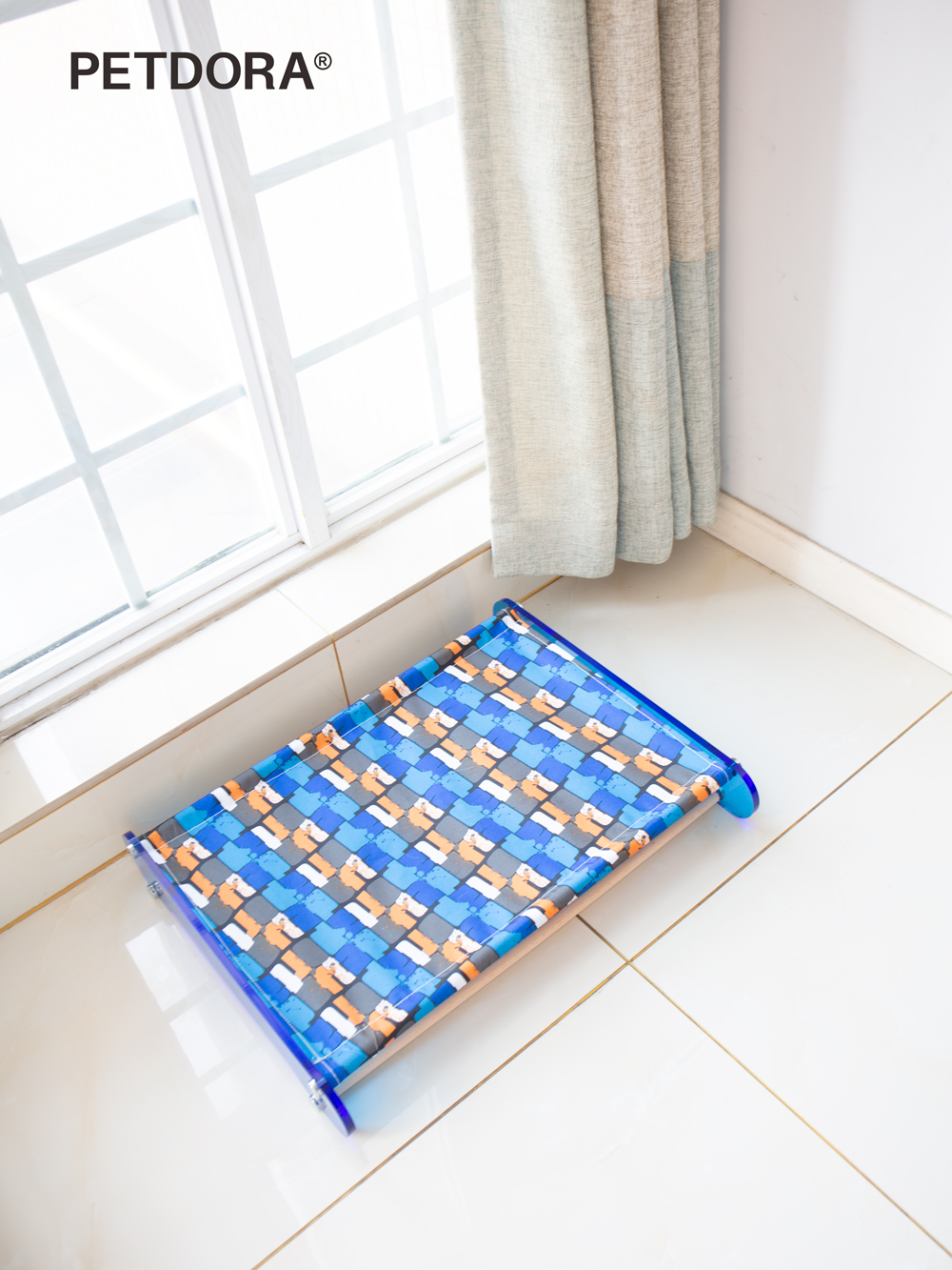 这是一款现代家居风格猫行军床设计。使用了亚克力、榉木和印花牛津布三种材料巧妙搭配,充满了设计感。可以轻松地融入我们的家居环境中去,实现人宠和谐生活。